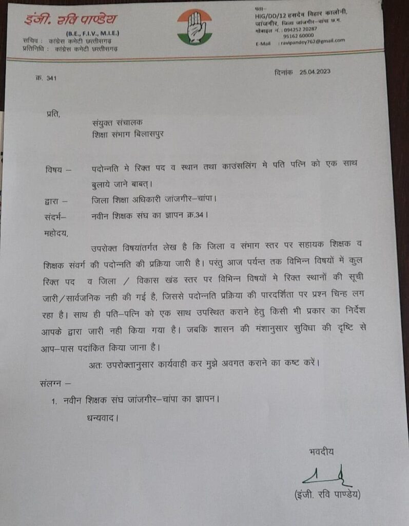 0 प्रदेश कांग्रेस कमेटी के सचिव का प्रयास लाया रंग, शिक्षक संवर्ग में खुशी की लहर…